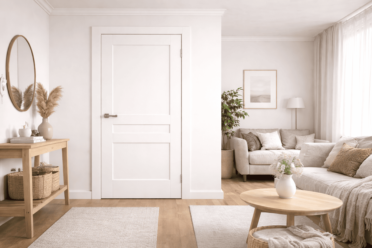 The refined white soft touch finish features a matte surface with a smooth, pleasant feel, adding a subtle sense of luxury and modern elegance. Thanks to its neutral color, the door blends seamlessly with modern, Scandinavian, and classic interior designs, visually brightening the room.